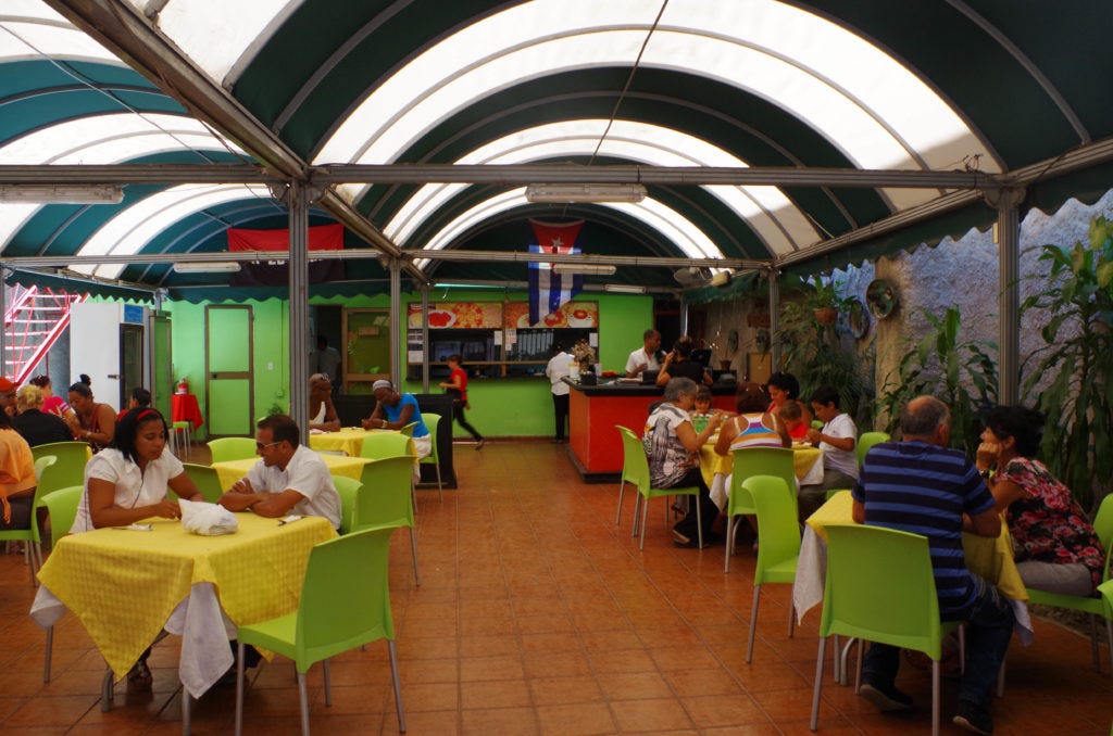 I did visit one government restaurant where the prices were in Cuban Pesos. (In Cuba there are two currencies: Cuban Pesos and Cuban Convertibles or CUCs. The pesos are for locals and the convertibles for tourists. During my time here, there were 26 pesos in 1 convertible.) In this restaurant, everyone besides us was a local. It was a simple, but colorful space with arched ceilings that let in a portion of natural light.