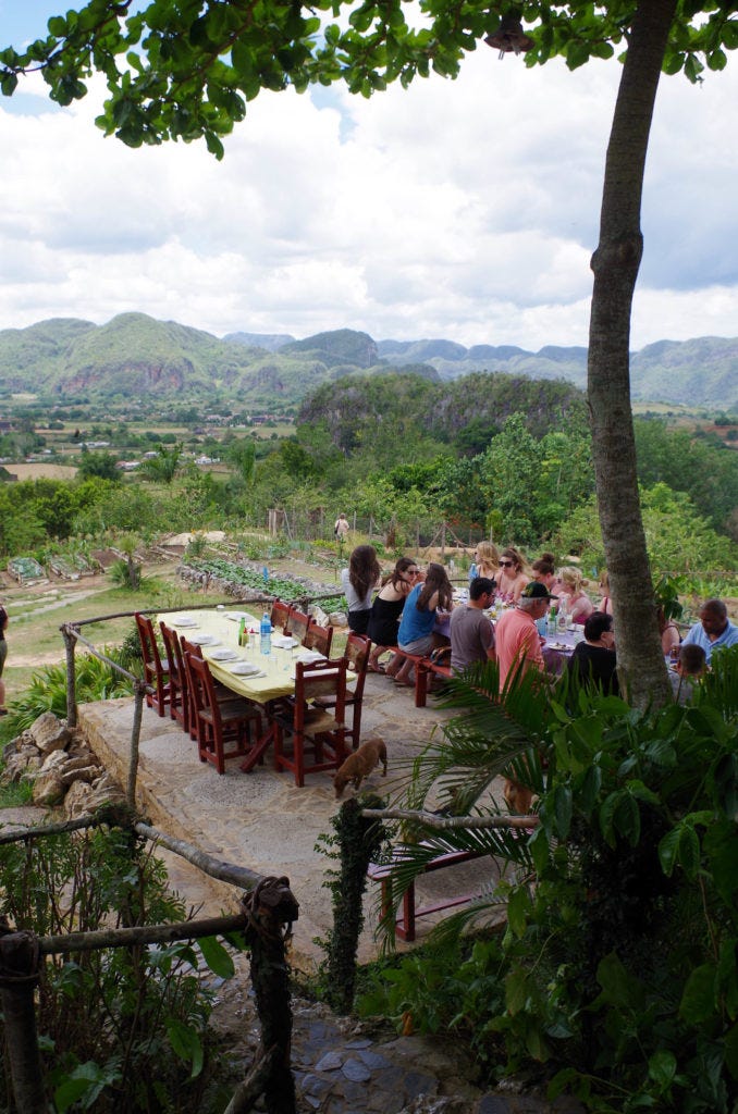 El Paraiso has a fantastic panarama of the green mountains just past the farmland spread out below you. It’s an all organic farm, where they grow their own food. They serve family style meals for 10 CUC per person.