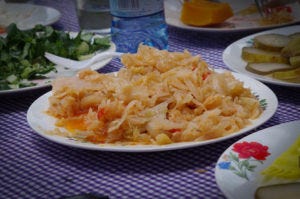The meal included soup, pickles, ocra, peppers, tortillas, chips, chicken, lamb, pork, sweet potatoes, rice and beans, and cabbage (which was prepared an exceptionally savory way). To finish the meal, the waiter brought out a flan for desert along with tiny cups of coffee. Definitely a fantastic meal!