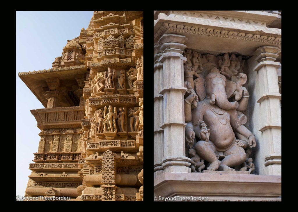 In Jhansi, we found our next private bus and headed to Khajuraho. Khajuraho (a UNESCO World Heritage Site) is famous for amazingly preserved Hindu and Jain Temples mostly built in the 10th and 11th century. We visited a site with maybe a dozen or more temples within close proximity of each other.