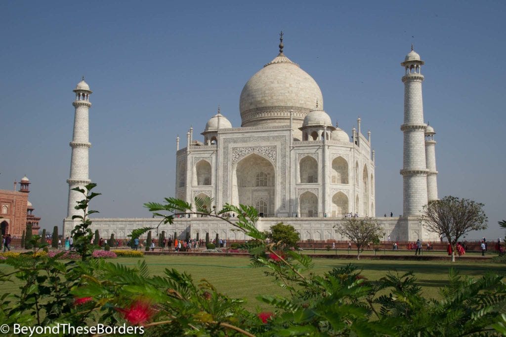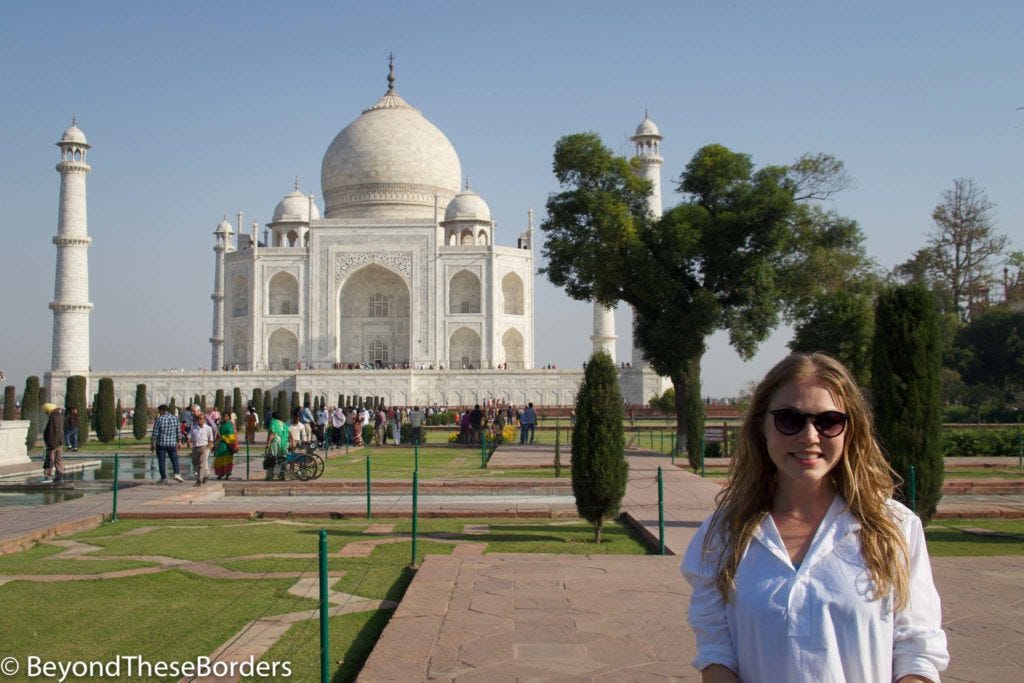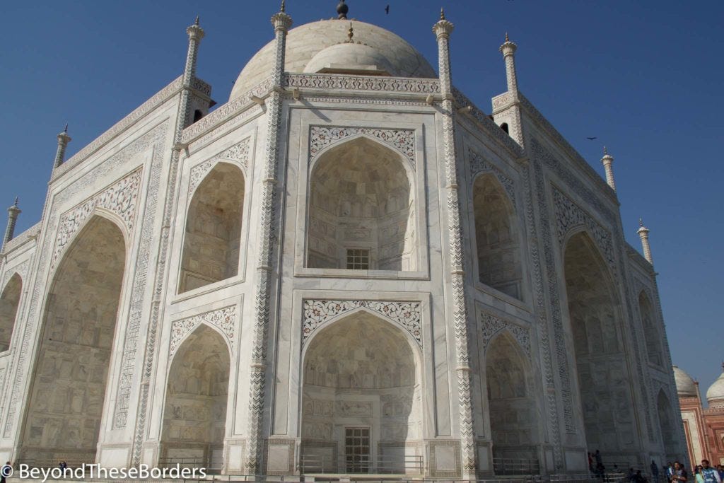 We finally made it to Agra but with no time left that day to sightsee… The next morning, we were off to The Taj Mahal! It really was more beautiful in person than in pictures. You walk through a grand gate and with every step up to and through the door, more of the Taj Mahal comes into view.