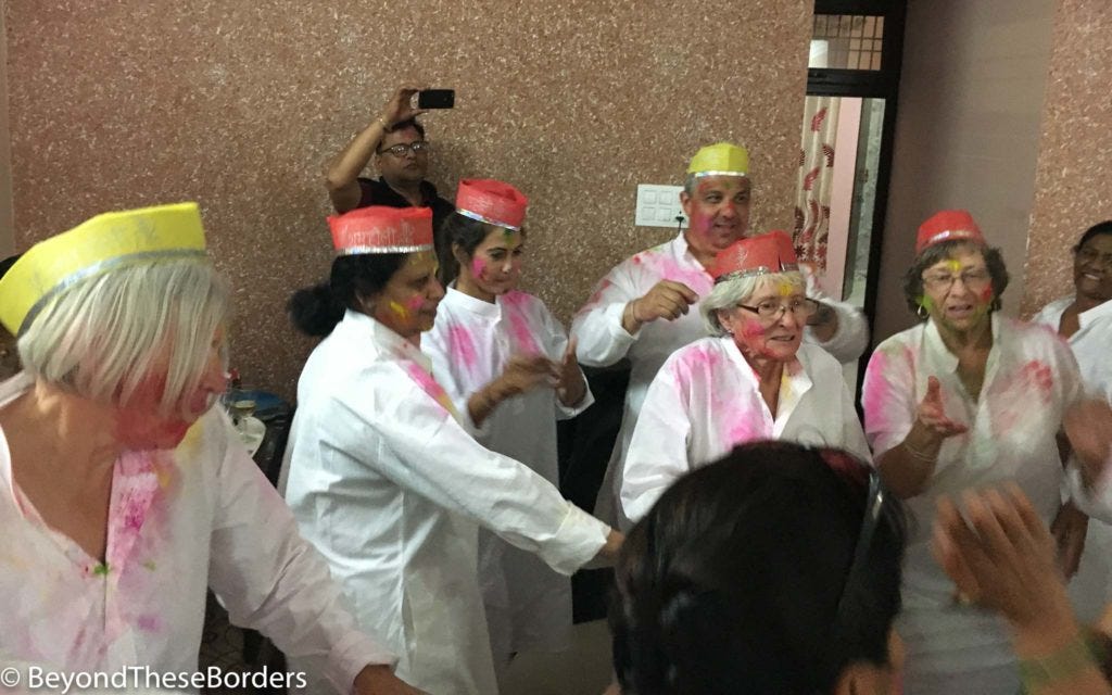 After some time visiting, they moved the chairs and it was time to dance! It was a blast! I was very sad to leave. As we walked out, the neighbors really wanted us to celebrate with them too.. smearing colors and drenching each other with water. But our hosts wouldn’t allow it. It would have been fun, but we would have been walking around Agra, soaked for the next few hours.