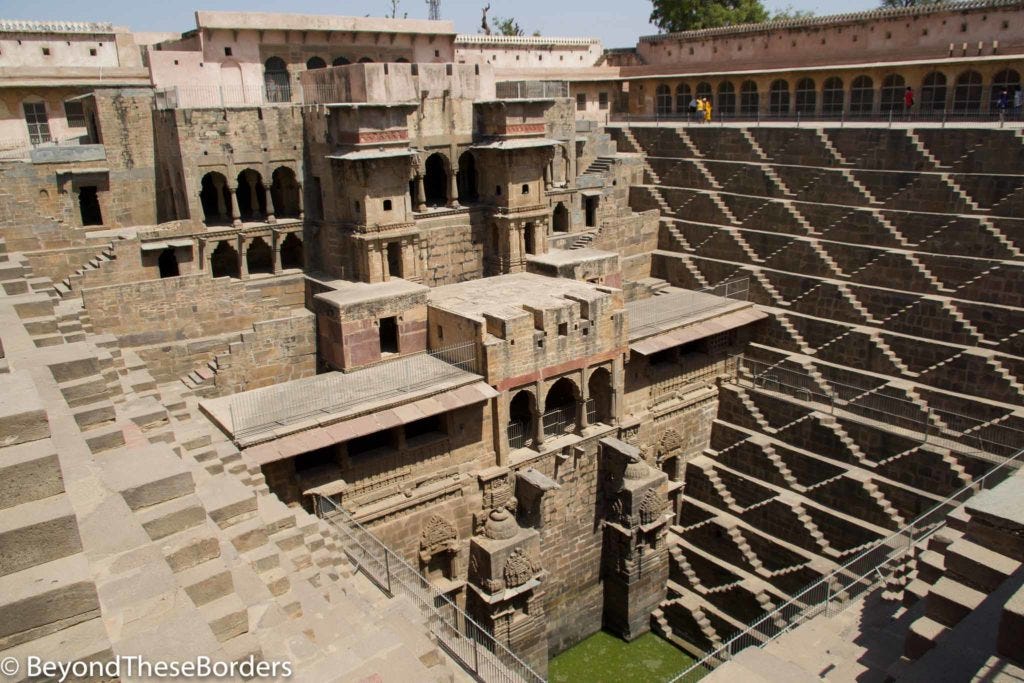 Stop 2 was one of the largest step wells in India: Chand Baori. Step wells were built to save/harvest water in dry areas, with steps down to whatever height the water was currently sitting. Chand Baori was built sometime in the 9th Century. While there, you should also check out the many Hindu carvings on display around the well. For more info on Chand Baori, you can check out this link: www.chandbaori.org