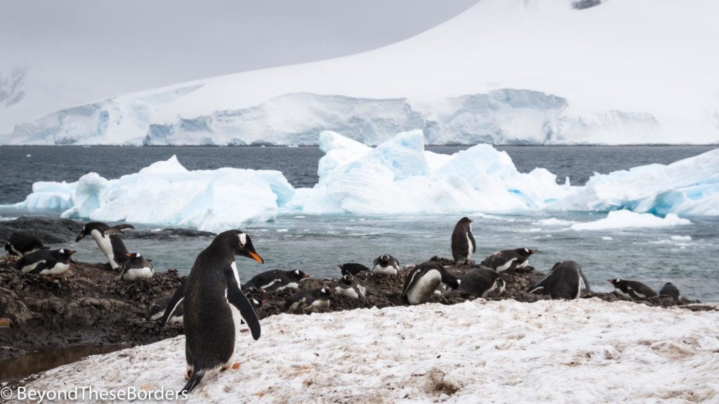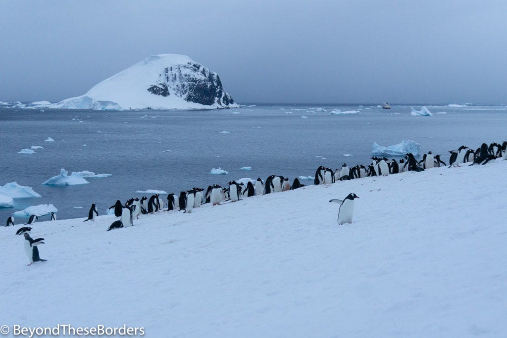 Day 7. My favorite day in Antarctica… (and my birthday). We first had a landing where thousands of Gentoo penguins were nesting. They would come check out the people, then waddle back to their pack. There was a tall hill I hiked up to see another group of penguins and look out over the bay.