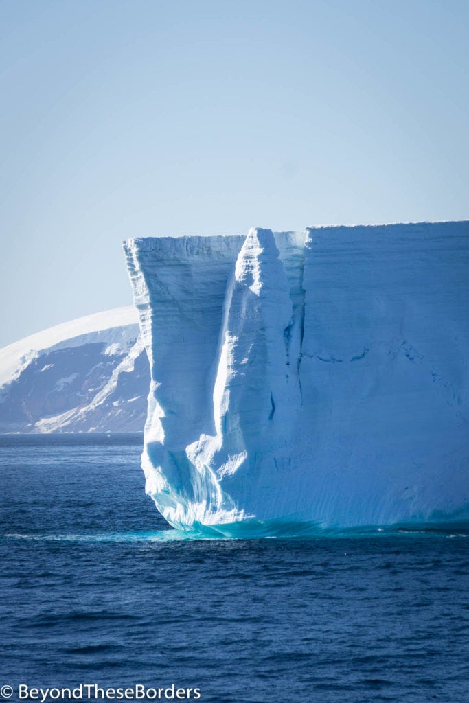 Day 5: We awoke to icebergs floating outside our window! We had made it to the Antarctic Sound and planned to visit Brown Bluff. It was blue clear skies… but unfortunately lots of wind and swell changed the plan. We spent a good portion of the day sailing to different bays in the Antarctic Sound while surrounded by icebergs and snow covered land. The captain tried 3 different locations before finding Petrel Cove where we still couldn’t land but could take a short cruise to see the colony of Adelie penguins on shore.