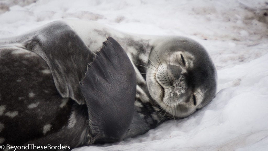 This was our second continental landing and the area is a Chilean base. There were hundreds of nesting Gentoo penguins all around the base including one that stood out from the crowd. She is an isabelle penguin, meaning she is lacking pigment in just her feathers, rather than an albino which completely lacks melanin. It was cold, windy, and very icy on this landing. So while we loved watching the penguins, we were ready for the warmth of the ship afterwards. There were also a few weddell seals resting on shore.