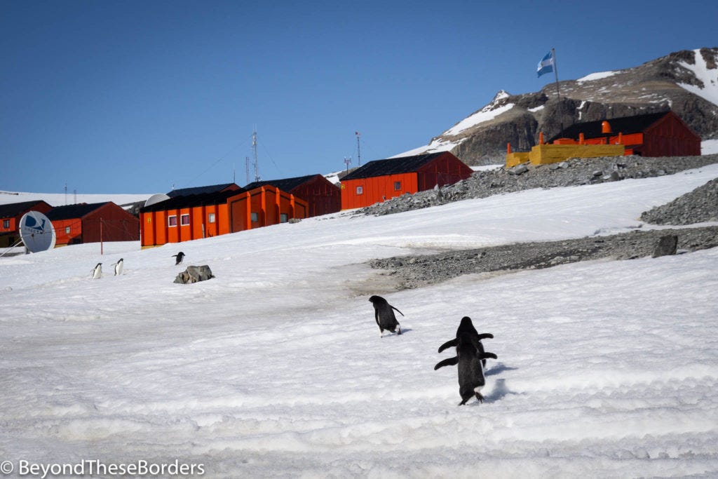 Day 6: We tried again for Brown Bluff but there was still too much swell, so we headed for Esperanza Station in Hope Bay. This is an Argentinian research base. One of the Argentinians showed us around a bit and then we watched the Adelie penguins that reside alongside them. This was our first time stepping foot onto the Antarctic continent!