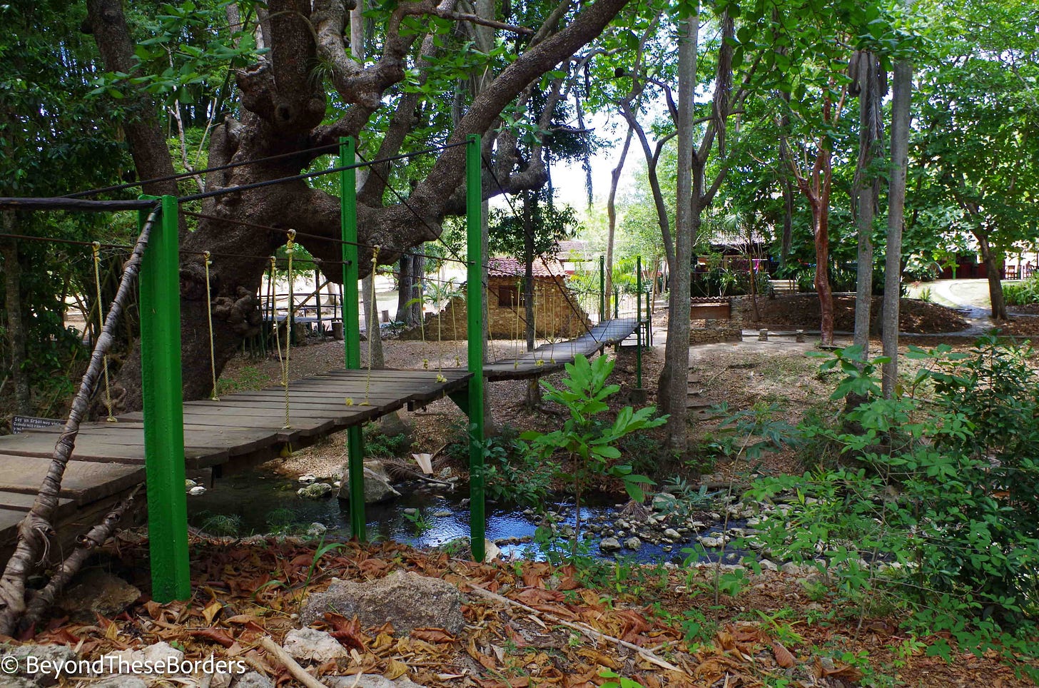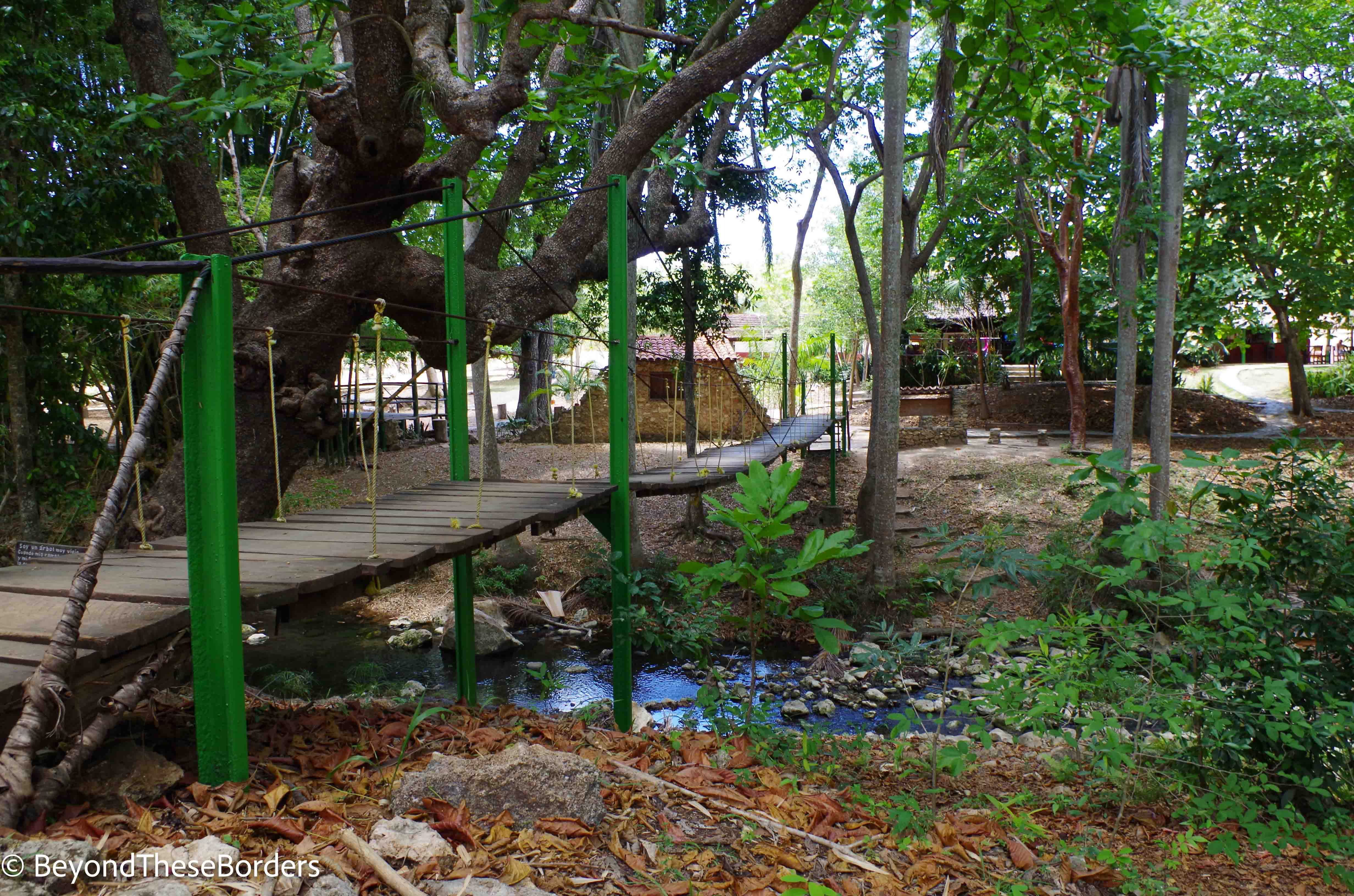 We found the entrance to Parque El Cubano and paid 10 CUC (which equals $10) to enter the park. We began the beautiful 3-3.5 km hike. The hike starts with crossing a swaying wooden bridge over a stream.