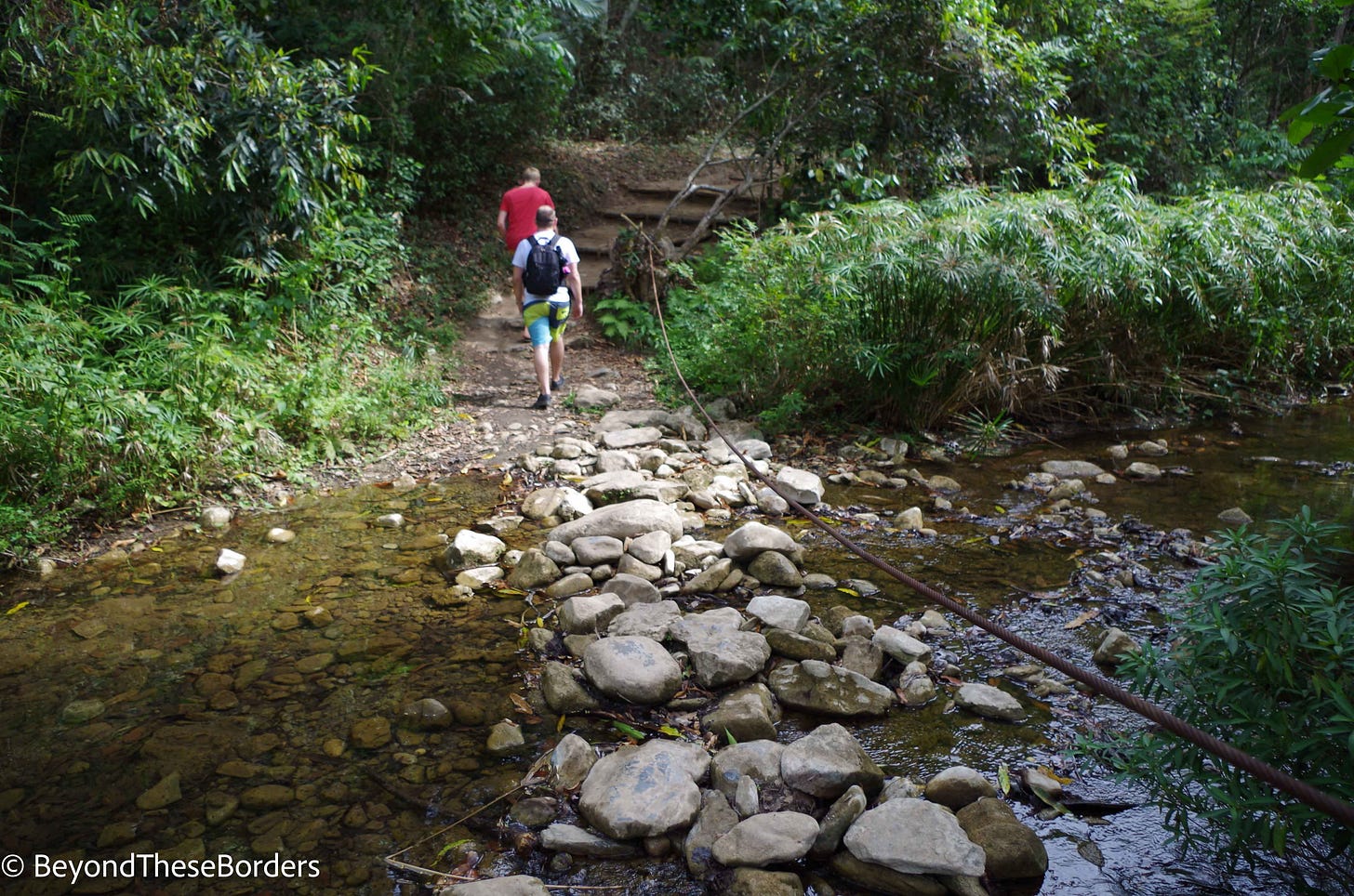 Twice more we crossed streams by hanging onto a rope and maneuvering across rocks.