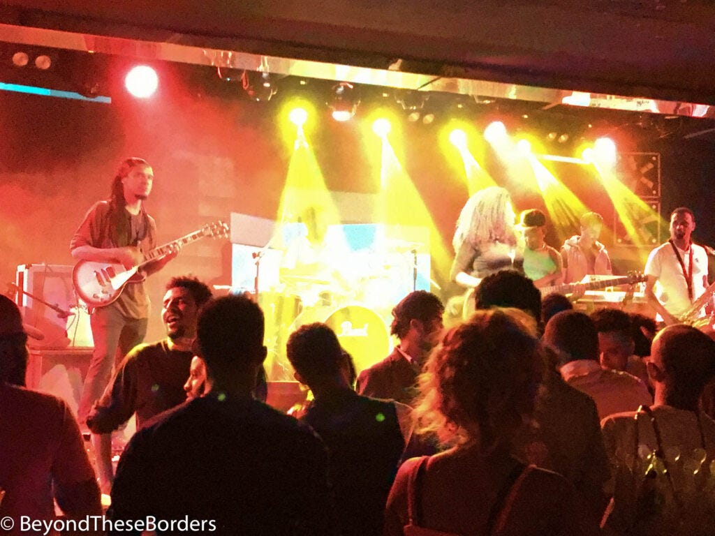 Next we went to a small local bar, followed by a very popular club. Two young Ethiopian guys that sat next to us at the dive bar recommended the nearby club. We climbed many flights of stairs to find 30-40 people waiting to get in. Instead of waiting in a line, everyone crowds in as close to the entrance as possible, pushing for the front. Therefore, when someone exits, they can hardly get out. You get in based on how pushy you are, not how long you’ve waited. Once inside, there was a stage with multiple live performances rotating through the night and people dancing. We made friends with some Ethiopian/Americans there and had a great time.