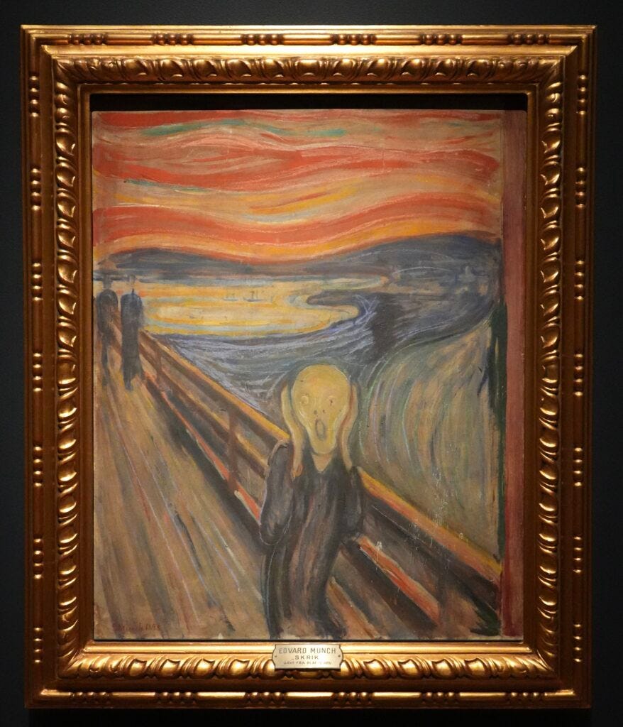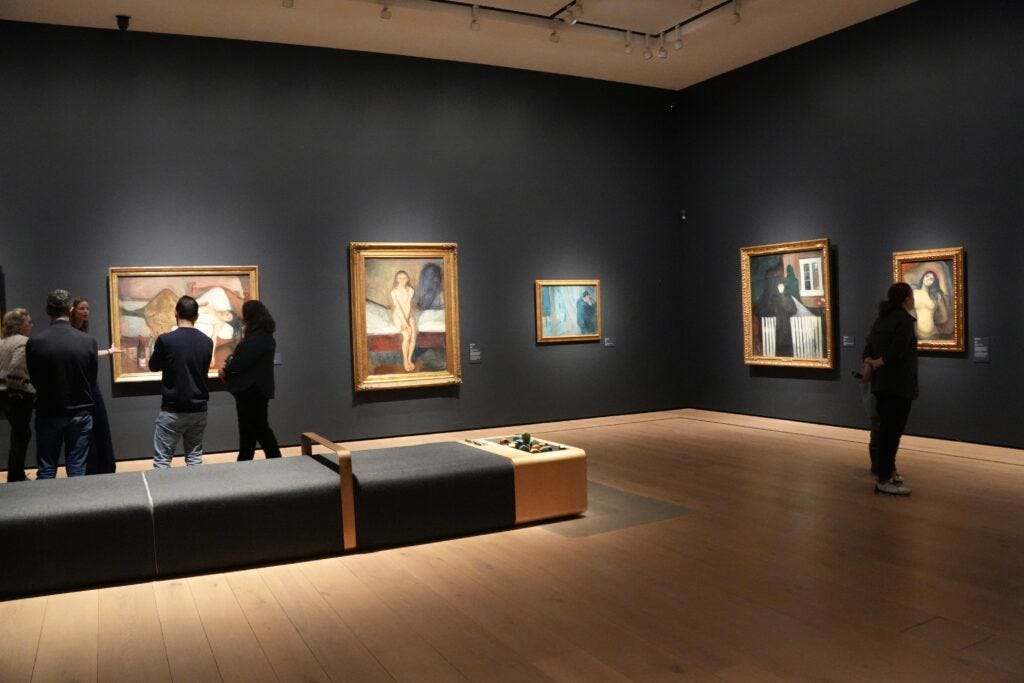 We spent a few hours at the National Museum in central Oslo wandering through paintings from the 1500’s to the recent past. The museum is large and we saw a little over half during our visit. Many Norwegian artists and other artists who painted Norwegian landscapes are on exhibit. I really enjoyed seeing the works by Norwegian painters Johan Christian Dahl and Edvard Munch. Edvard Munch’s most famous painting “The Scream” is on presentation in this museum.
