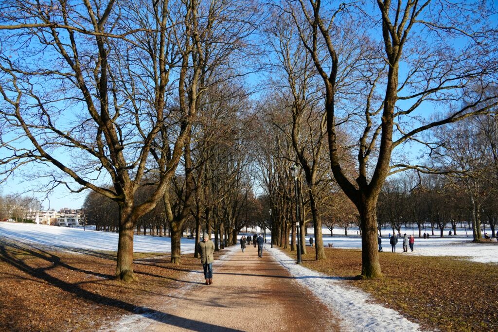 There are lots of green spaces throughout the city. Though in February they are more white and brown. These parks would be much more enjoyable in warm weather when the trees have green leaves covering them. To sit on the grass and enjoy a nice day would have been lovely. But even in the winter, locals were out for walks and runs around the parks. So many mothers pushed their bundled babies in strollers along the walkways even though it was only 20-30°F. Somehow, neither mom nor baby seemed to think it was too cold.