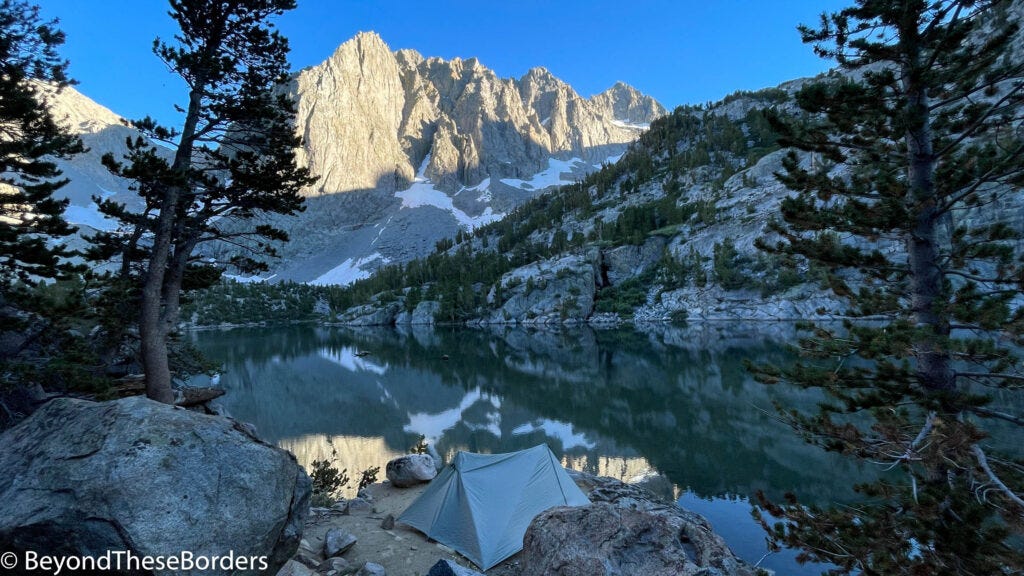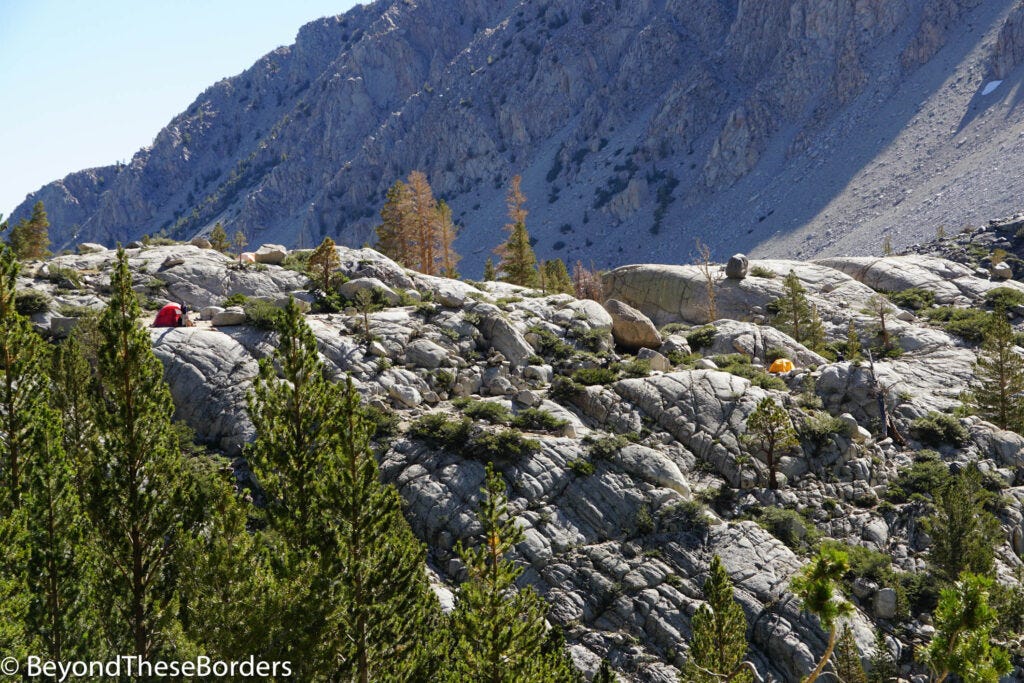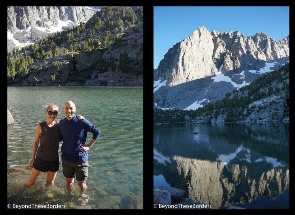 We camped at Lake 3 on this most recent hike. We found a nice, almost flat area jutting out to the water. It was in a quiet area with a clear view of the lake and Temple Crag. Although barely large enough for our tent, we made it work. Our campsite even had easy access to the icy cold lake, which was great for cooling down after a day of hiking.