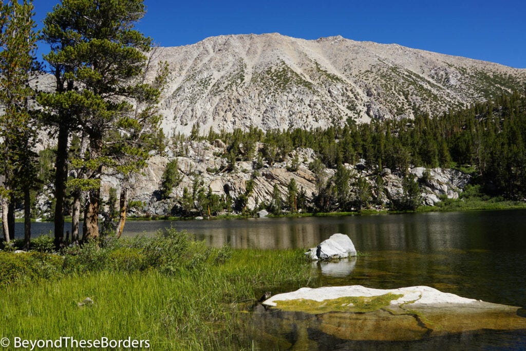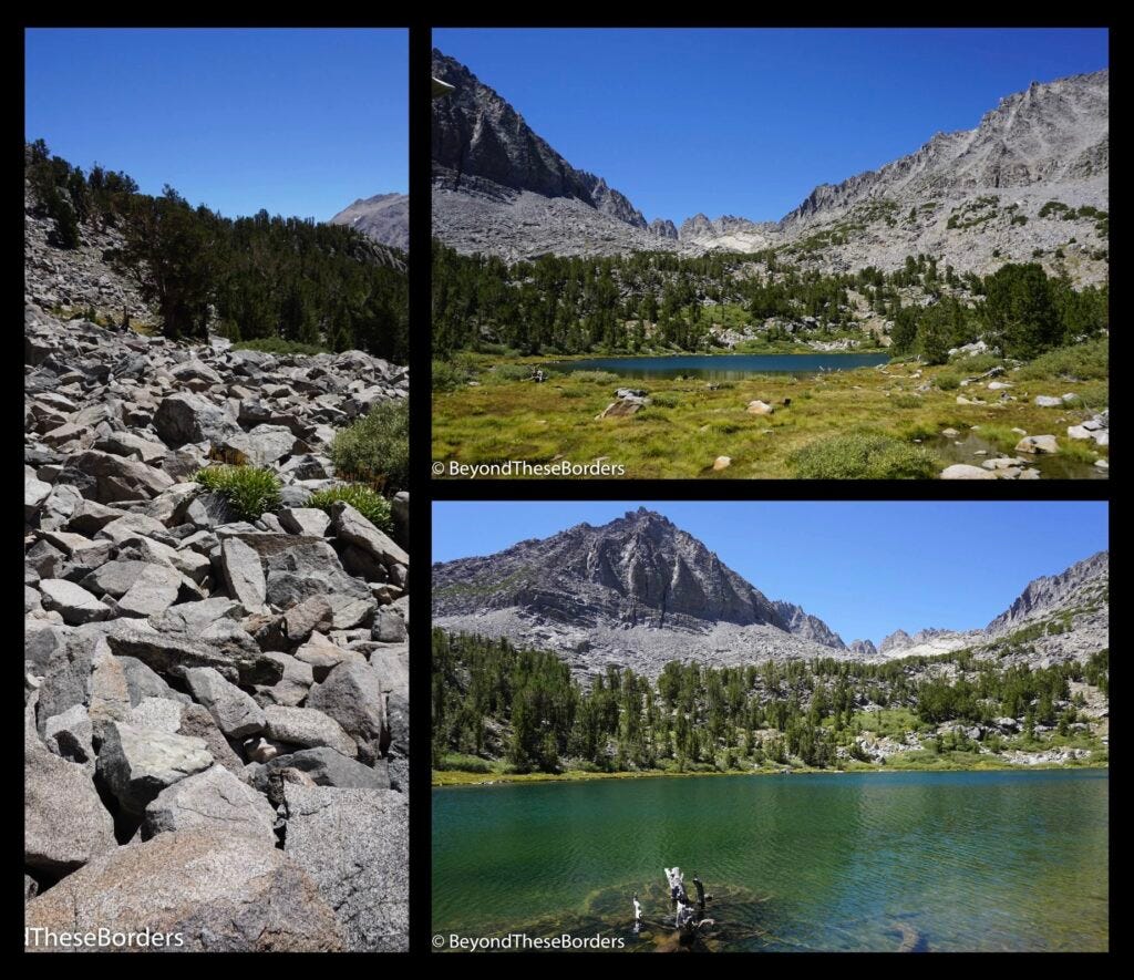 Lake 3 is at the 5.5 mile mark of the hike and the elevation from the beginning to this point is about 2,600 feet. Less than a mile from Lake 2, you should at least see these 3 lakes on your trip. Since Temple Crag is in between Lakes 2 and 3, the other side of it rises behind this lake.