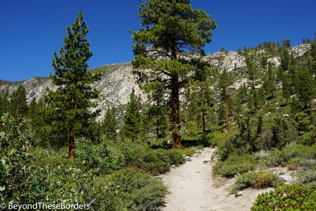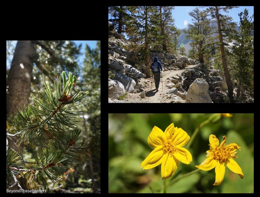 The start of the hike is pretty exposed with a nice view of the mountains ahead. Within a couple of miles you will be walking among the pine trees. You will continuously climb elevation up to the lakes.