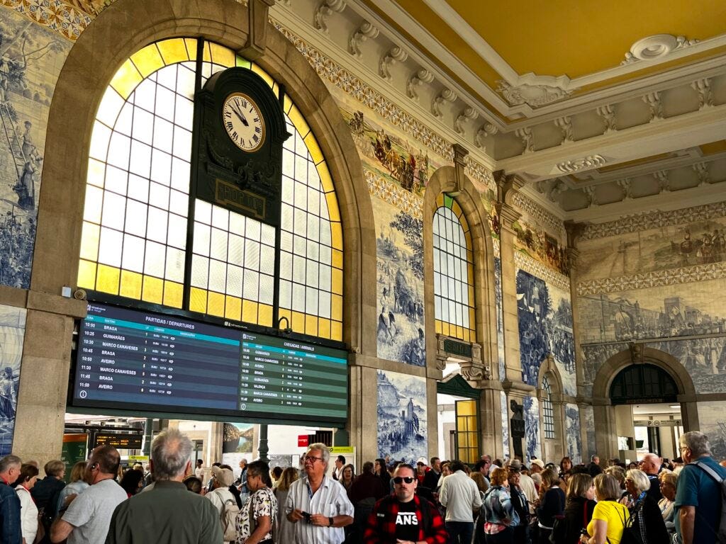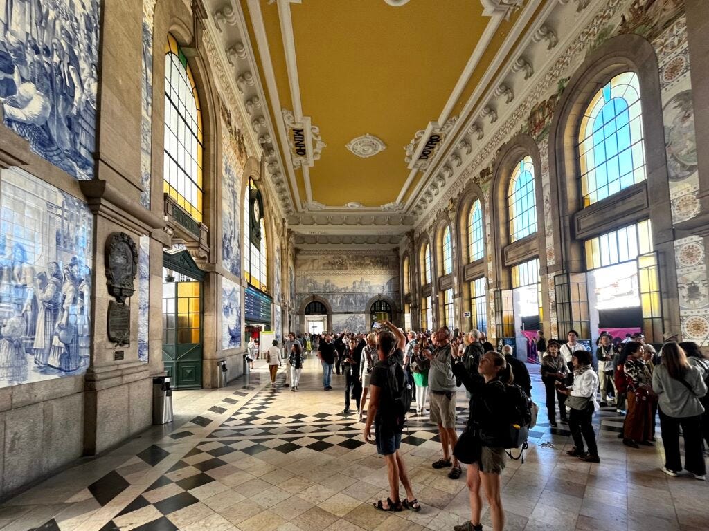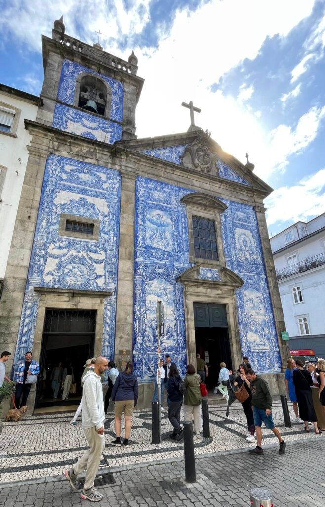 Blue and white tiled churches, mosaic sidewalks, colorful apartments, bridges, hills, and port wine. This is Porto and it’s delightful.