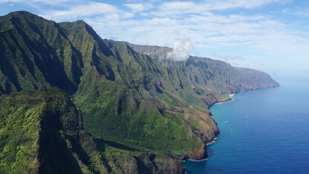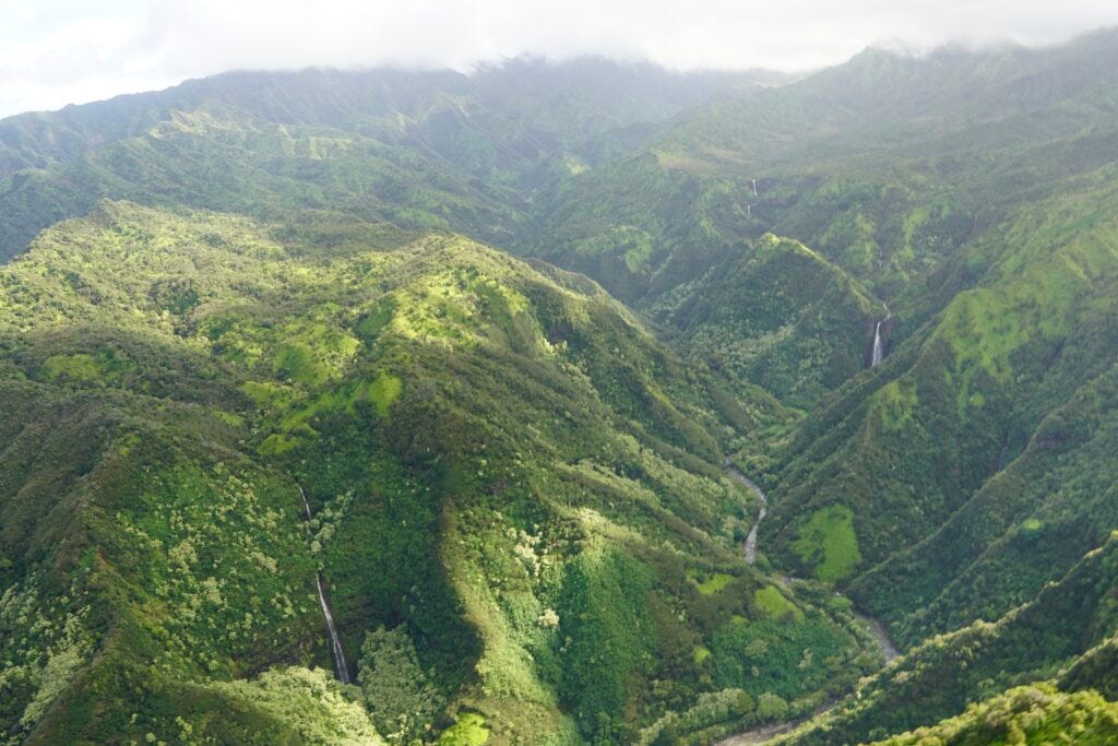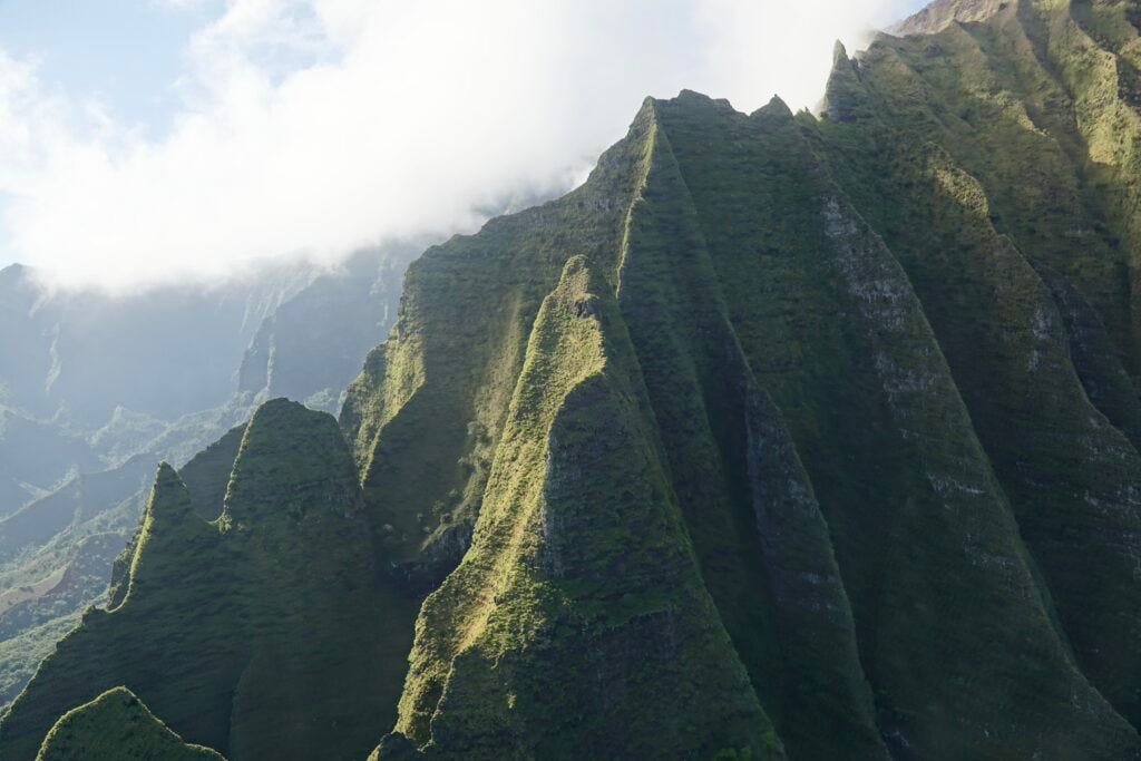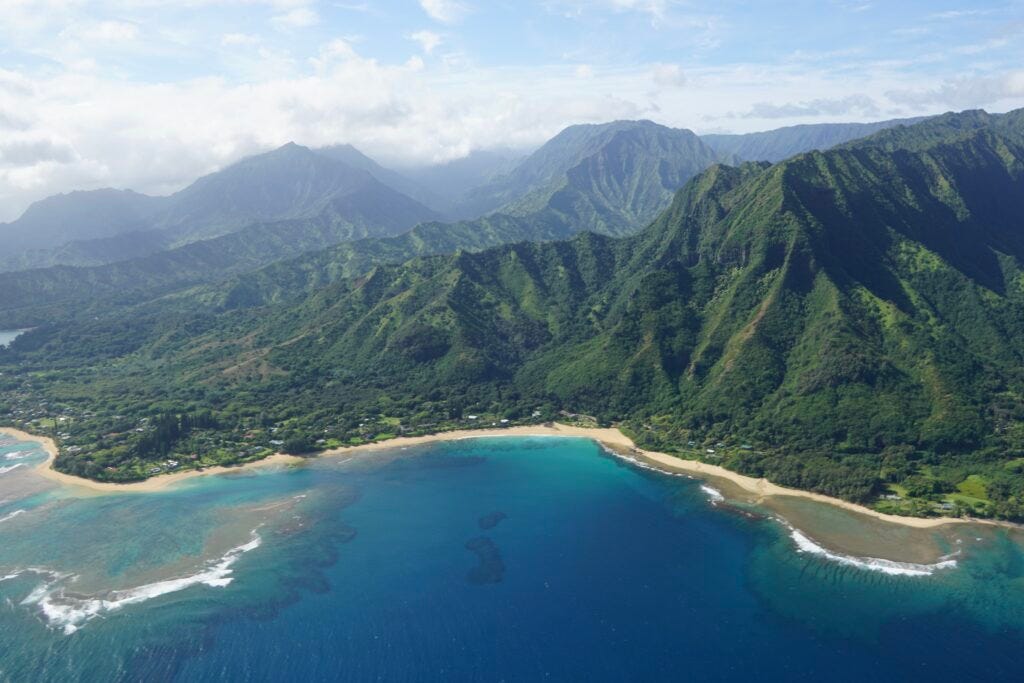 From the helicopter, you will fly over endless green mountains with waterfalls plummeting over edges into hidden pools below. You will see the incredible Waimea Canyon, with its red rock and lush green valleys. Then the flight will take you over the dramatic ridges of the Napali Coast. This aerial view reveals small secluded beaches tucked between the rugged ridges reaching into the Pacific Ocean. Rounding the north side of the island, you’ll fly over Hanalei Bay and then back south where clouds cling to lush, waterfall-kissed mountains.