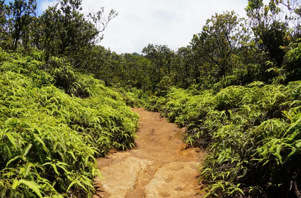 The Pihea Trail starts from Pu’u O Kila Lookout. We hiked just the first mile of the trail as it became too muddy for us after that. The start of the hike provides a view of the ridge that the trail follows as well as the expansive forests to the east. Along the trail you get more views of the Napali Coast that are a bit better than the view from the lookout. Vivid green ferns surround the trail before it enters a forest of trees. The trail becomes increasingly difficult towards the end of that mile with increased mud and climbing. The best views are within the first 1/2 mile before the mud and steep sections.