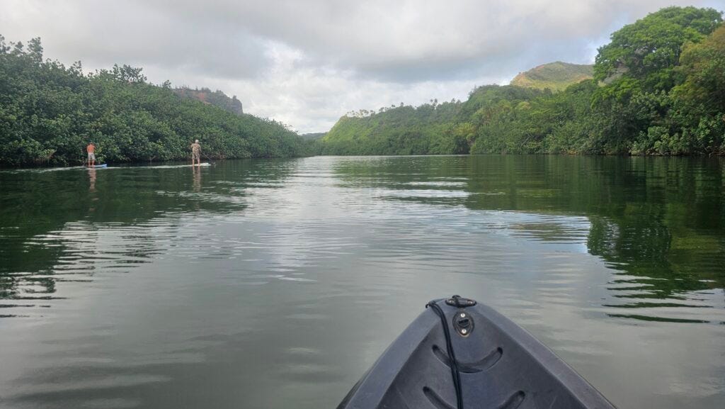 A great way to start your vacation in Kaua’i is with a kayak and hike to Secret Falls. You can either book a tour or rent kayaks and do the excursion on your own. The route is pretty easy to follow, and there will be other people around if you find yourself unsure of the route at any point.