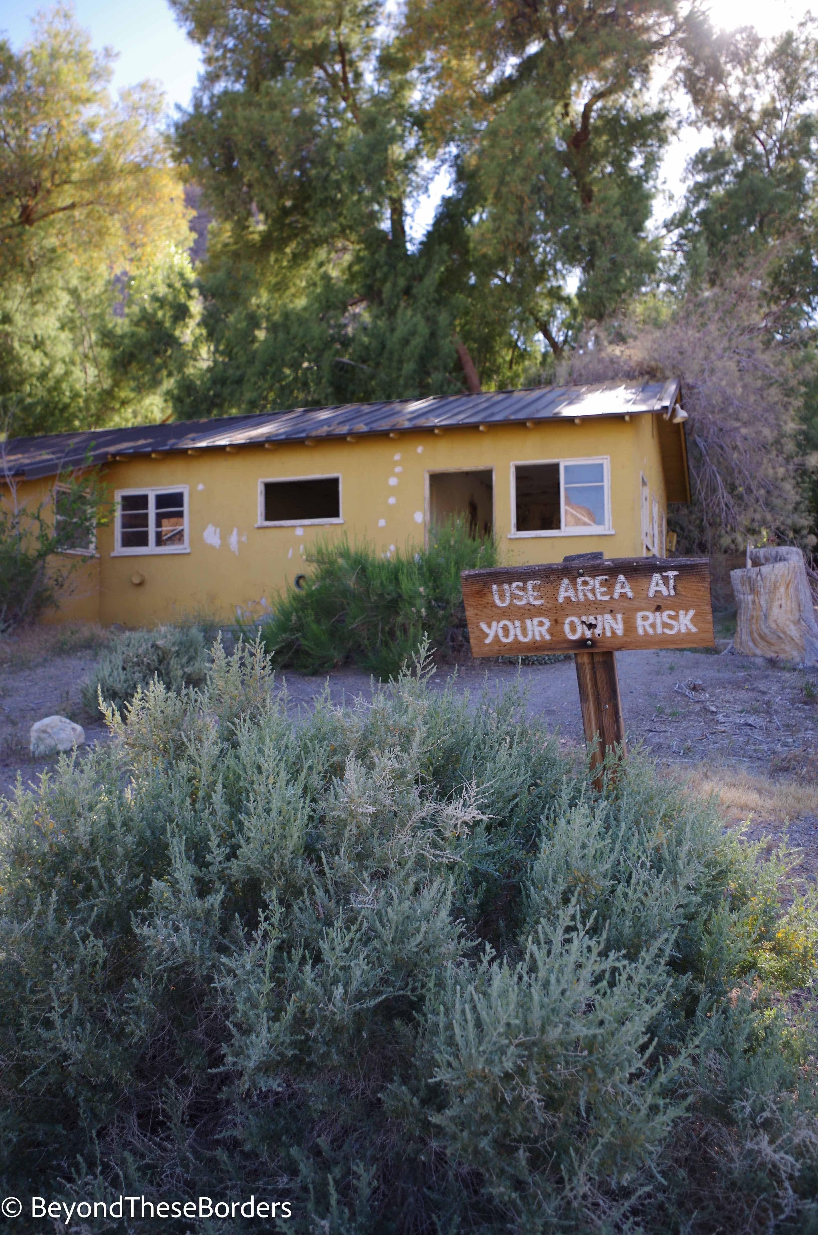 Directions to Warm Springs Campground: Drive South on Badwater Basin Road, turn west (right) onto West Side Road and west (left) onto Warm Spring Road. After passing an old mine on your left, watch for the yellow buildings of camp. The drive is about 30-40 minutes on rough sand, dirt, and gravel roads.
