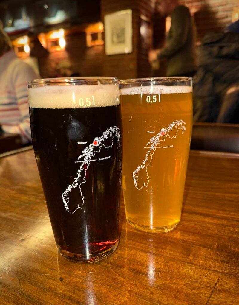 Mack’s Brewery claims to be the most northern brewery in the world, though now Svalbard Brewery also exists and it is further north. So I guess this claim no longer is valid. Mack’s Øhallen brewpub is the oldest pub in Tromsø. It was opened in 1928. There are about 50 beers on tap, many Mack’s beers as well as other Norwegian beers. Øhallen has a nice ambiance to hang out and enjoy a beer, but you are in Norway and drinks here are very spendy. Expect to pay $15-20 USD for a half liter (about a pint).