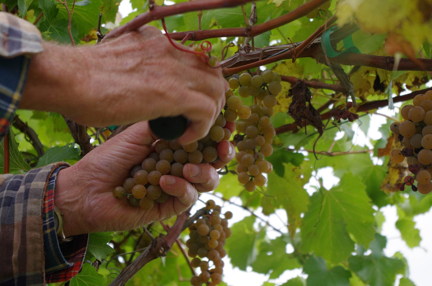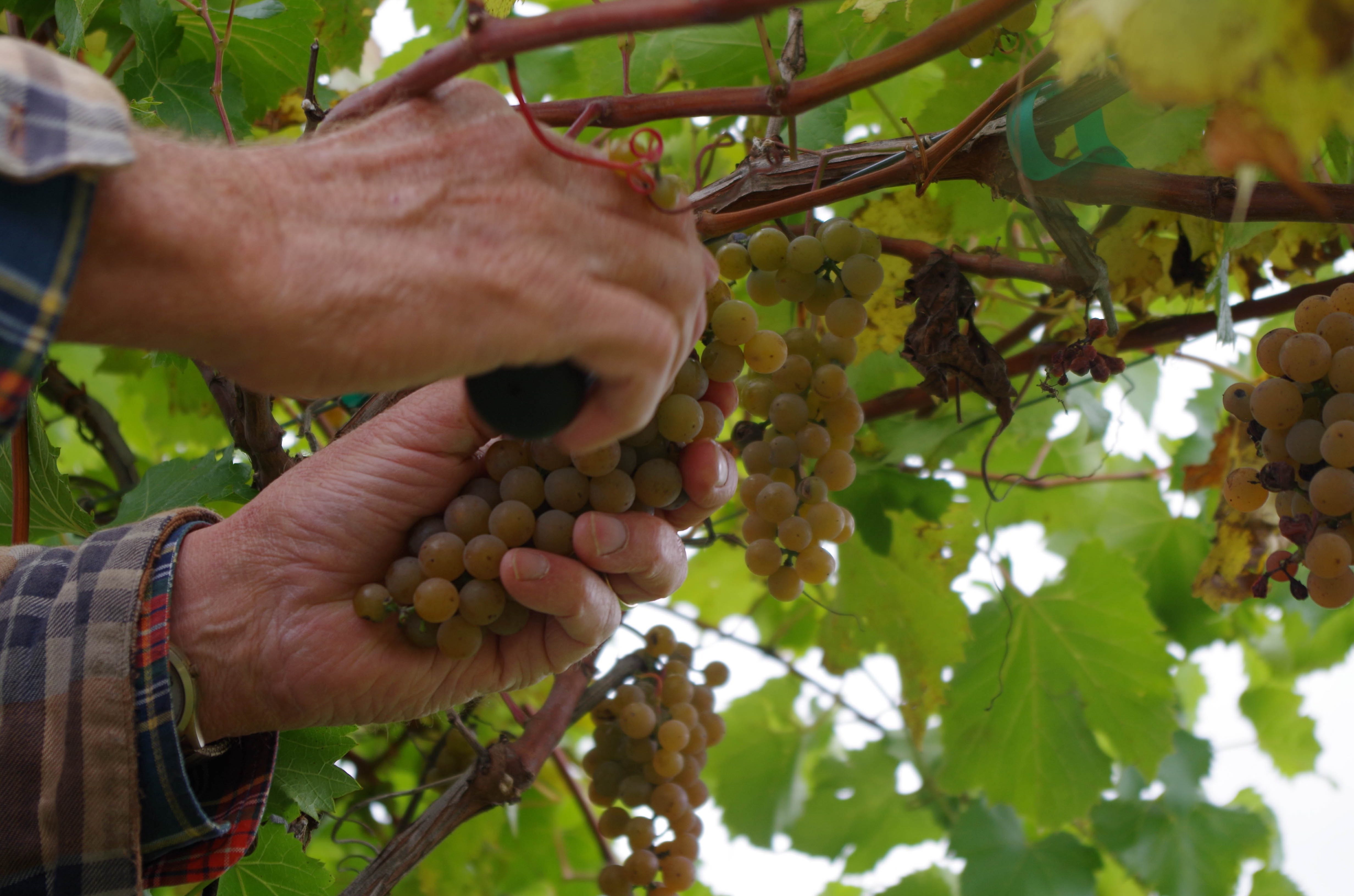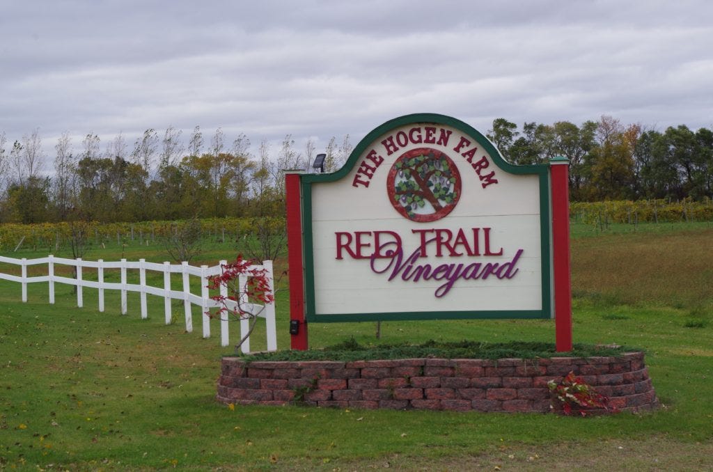 The name comes from the Old Red Trail which was one of the first established trails guiding settlers through the Dakota territory. I jumped at the opportunity to stop in on a chilly day while Rodney and his son Mike were picking the Lancaster grapes off some vines just north of the house. They pick the grapes by hand, then transport them to a facility that ferments and bottles the wine before being returned to the vineyard for sale.