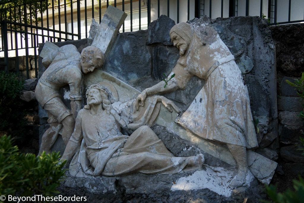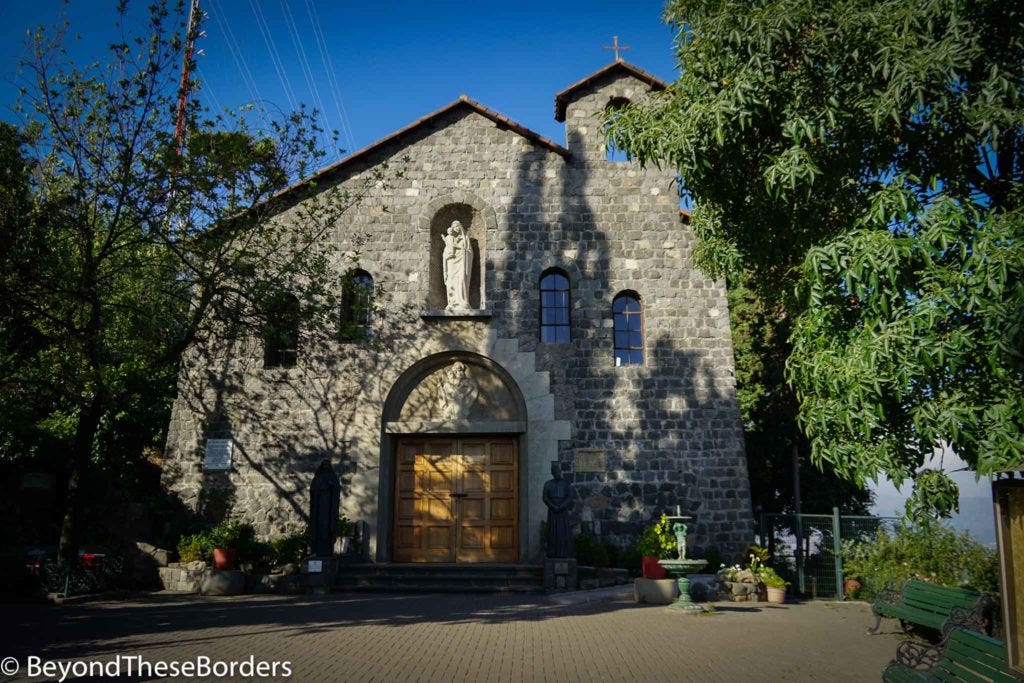 After checking in and dropping off our bags, we headed out to Cerro San Cristobal (San Cristobal Hill). You can drive, hike, or bike up this hill, but we chose to ride the funicular up. It’s famous for awesome views of the city with the mountains rising up behind it. We could see the mountains but did not end up with a postcard shot. It was hazy as I guess it often is. The best, clearest views are just after some rain. The hill has a statue of Mary at the top, crosses, and a church.
