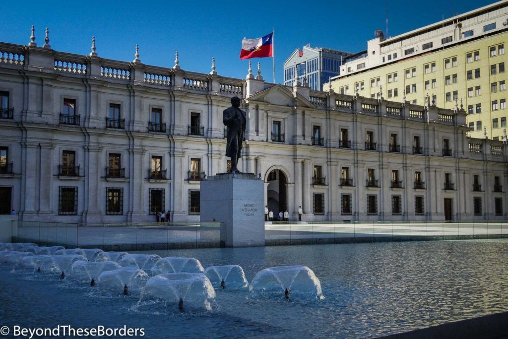 A short walk over is Palacio de La Moneda, the seat of the president of the Republic of Chile. Guards surround the building, there are fountains on one side, and a large cement courtyard on the other.