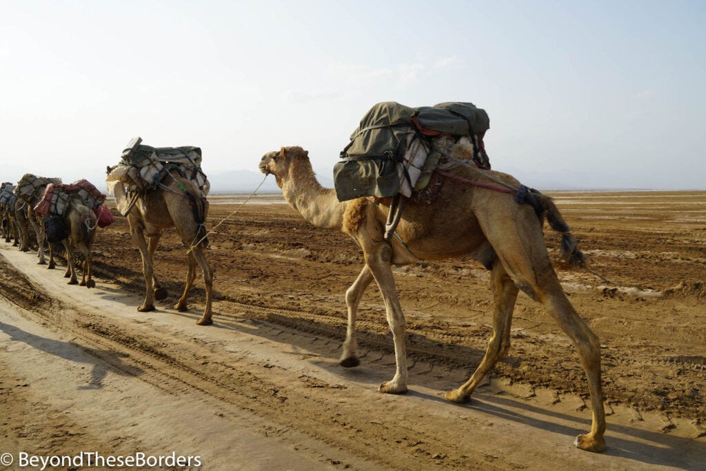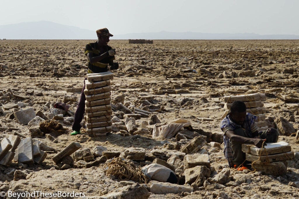 The Danikil Depression… what an experience. Salt flats, unworldly colorful landscapes, and hiking to the rim of a volcano is quite the adventure. We are jumping back to February 2020, before so many borders closed due to COVID and before Ethiopia’s civil war in the Tigray region began. This is in the remote Afar region that many countries advise their residents not to travel to due to safety. So I debated visiting, but my curiosity won out.
