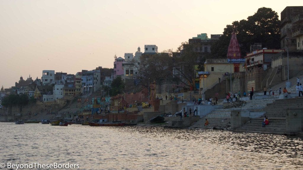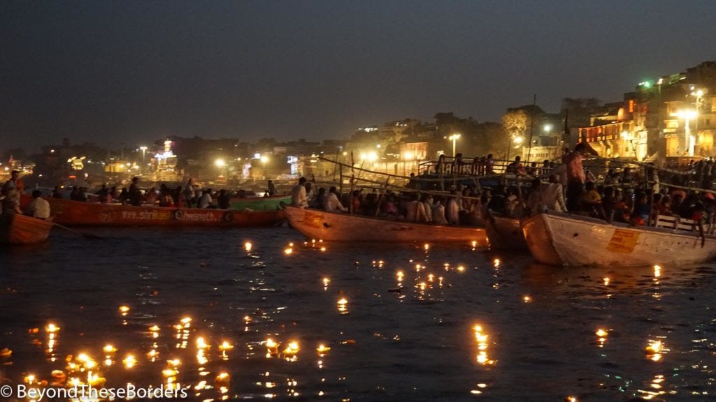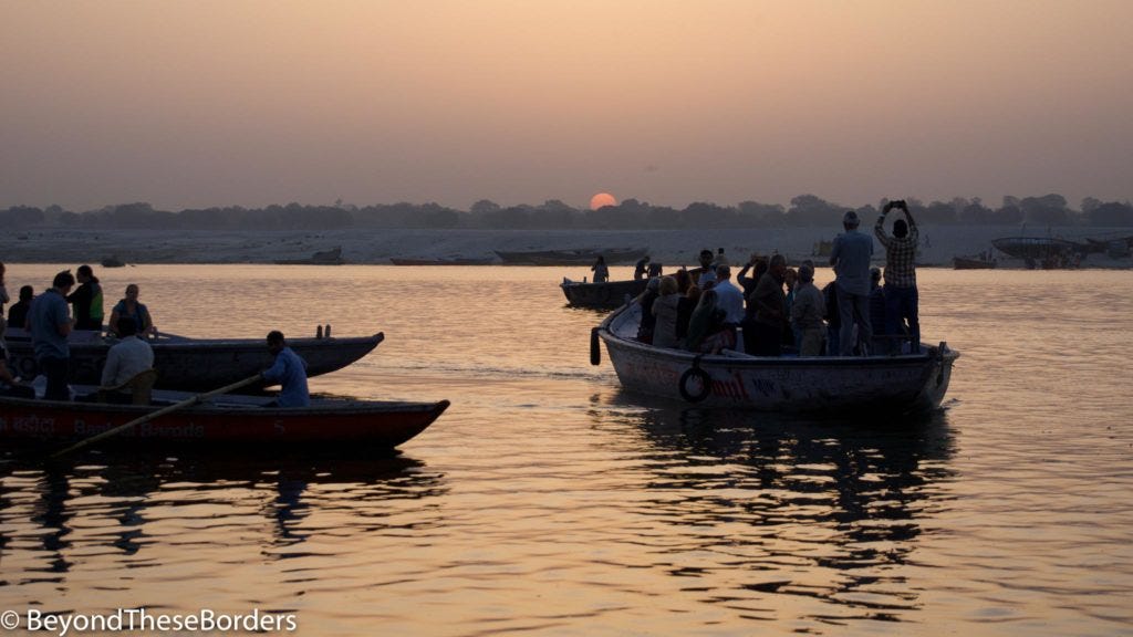 Back to our hotel for some much needed quiet before the highlight of the day. In the early evening we headed down to the Ganges, boarded a motorized boat, and traveled along the banks.