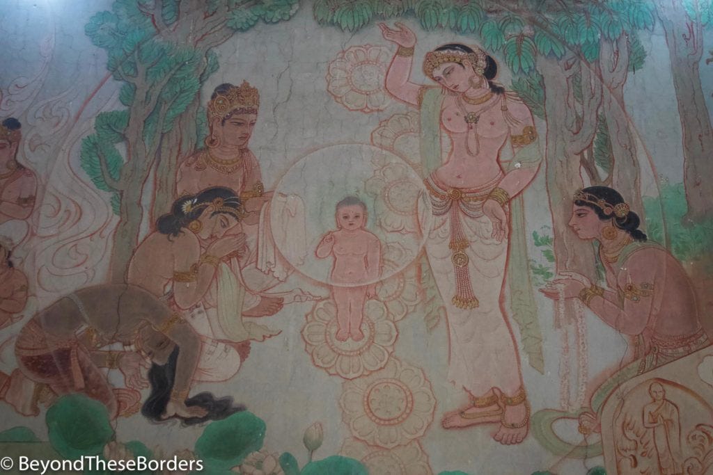We joined back with the tour group and headed out of the city to Sarnath. This is the location where the Buddha gave his first teaching of the Dharma to his 5 disciples after his enlightenment. We went to the Buddhist temple constructed at this site. On the walls, pictures showed the life of the Buddha from birth to death.