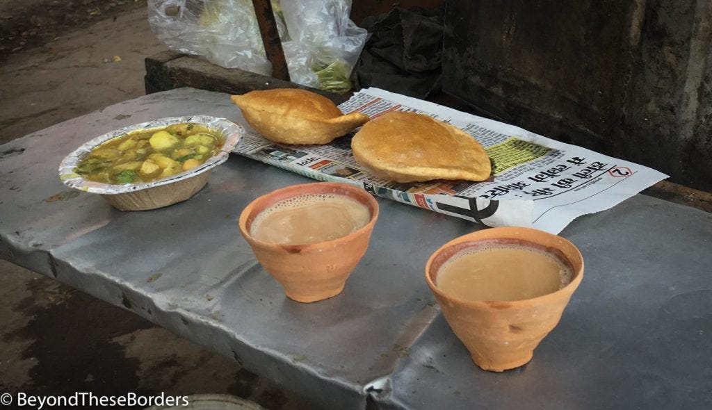 Not only did we have amazing food, but another man was cooking and serving masala chai next to us. The chai cost 15 rupees per cup and was AMAZING… so much better than the chai served in our upscale hotels and restaurants.